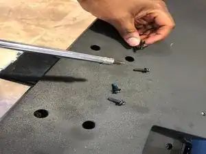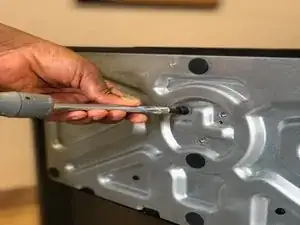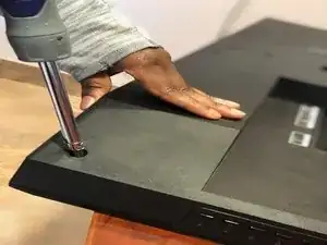 Начните со вскручивания винтов в нижней части телевизора.