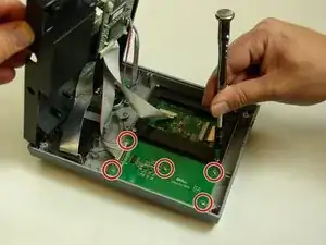 Удалите четыре винта PH #2 длиной 10 мм из сборки экрана, поворачивая отвертку против часовой стрелки, полностью извлекая винт из корпуса.