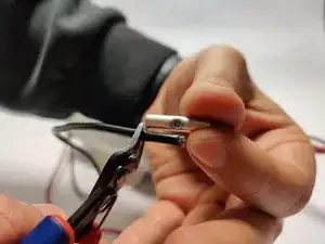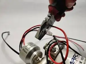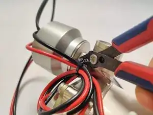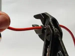 Используйте плоскогубцы, чтобы отрезать красный и чёрный провода до и после соединителя.