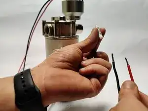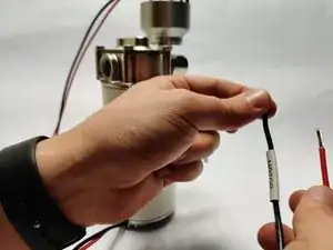 Наденьте термоусадочную трубку на оба питающих провода мотора.