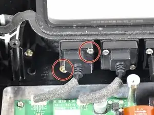 Удалите два винта T-10 размером 18 мм, крепящие Ethernet порт, поворачивая их против часовой стрелки.