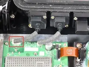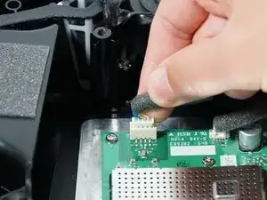 Отключите Ethernet порт от основной платы, сжимая белый зажим и тянув вверх.