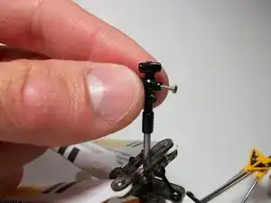 Снова с помощью пинцета аккуратно удалите стабилизирующие ссылки из каретки лопастей, вытягивая их прямо от точки соединения.