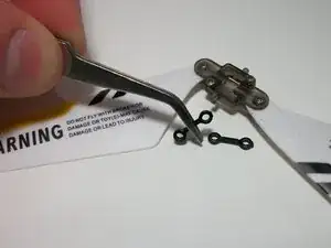 С помощью пинцета аккуратно удалите две стабилизирующие ссылки, вытягивая их прямо от точки соединения.