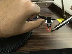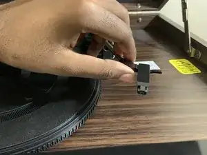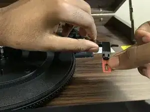 Подсоедините новый корпус, устанавливая его под углом вверх и к задней части головки тонарма.