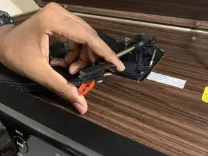 Вставьте инструмент для поддевания в корпус стилуса, прямо над красным корпусом.