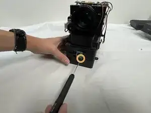 Используйте крестовую отвёртку #000, чтобы удалить два винта размером 6,3 мм, удерживающих датчик спереди проектора.