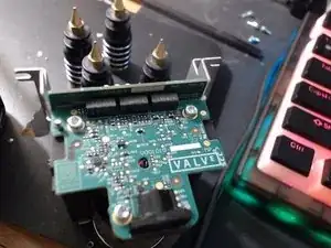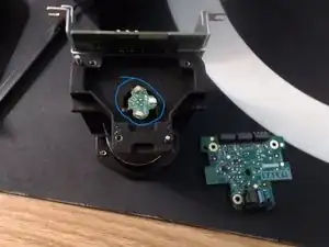 Используйте отвертку T8, чтобы удалить четыре винта, отмеченные синим кругом.