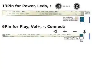 Кнопки воспроизведения, +, -, подключение: 6 контактов — тип B (обратный) (разъёмы ориентированы друг к другу в зеркальном порядке)