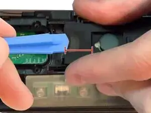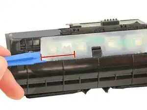 Вставьте пластиковый инструмент для открытия под прозрачную резиновую крышку над платой управления кнопками.