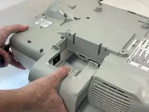 Источник питания — это та часть Epson Brightlink 450Wi, с которой вы будете взаимодействовать чаще всего. Он включает все порты, необходимые для подключения кабелей вашего устройства. Решение многих проблем с подключением можно найти через эти порты. В случае возникновения проблем с подключением или при необходимости замены следуйте данному руководству.