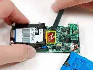 Поднимите батарею с материнской платы и отложите её в сторону от iPod.