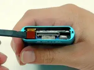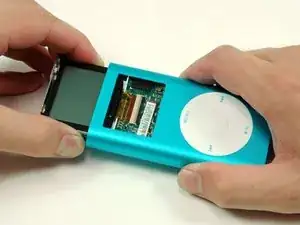 После того как вы достаточно вытолкнули плату, аккуратно возьмите её по бокам у дисплея и продолжайте выдвигать iPod из корпуса.