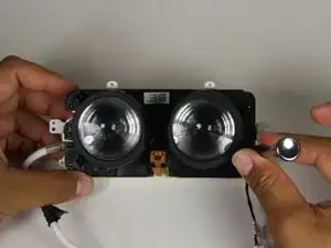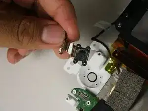 Аккуратно снимите сборку объектива и материнской платы из белого корпуса.