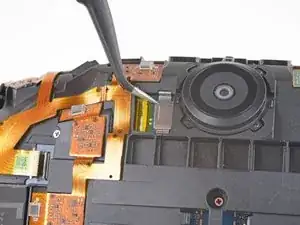 С помощью пинцета или лопатки подденьте крышку кабеля камеры и снимите её.