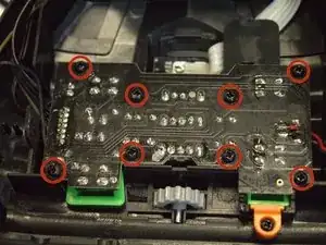 Снимите восемь черных винтов Phillips #0 длиной 7,2 мм с верхней части платы и извлеките плату из посадочного места.