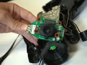 Удалите четыре черных винта Phillips #00 длиной 7,2 мм, которые удерживают сборку объектива и фильтра.