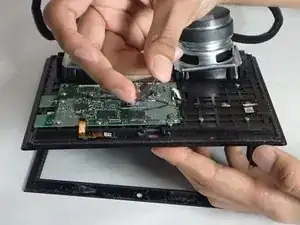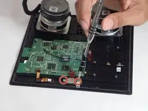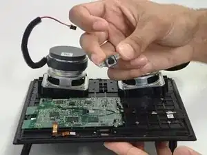 Используйте пинцет или руки, чтобы осторожно отключить красные провода, соединяющие динамики с платой питания.