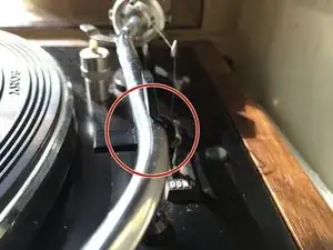 Поместите рычаг проигрывателя в защелку, чтобы он не двигался во время замены иглы.