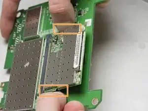 Удалите два куска клея, удерживающих карту WIFI на месте.