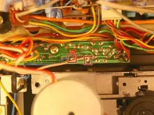 Отпайте красный и белый провода, отходящие от блока кассетного плеера.