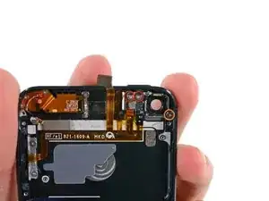 Поднимите заднюю камеру из её посадочного места и извлеките её из iPod Touch.