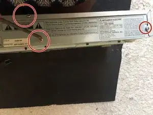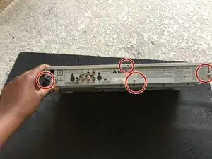 Удалите пять винтов Phillips #1 размером 1,2 мм для разборки DVD-плеера.