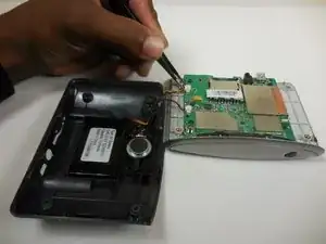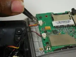 С помощью пинцета отсоедините провода, соединяющие батарею и динамик с материнской платой.