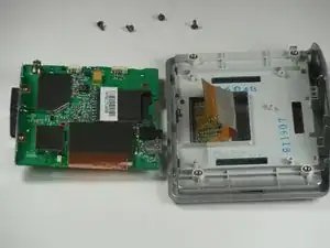 Материнская плата подключена к конструкции экрана ленточным кабелем. После снятия винтов будьте аккуратны, чтобы не повредить кабель или разъем.