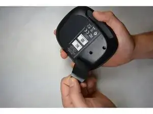 Снизу устройства, придерживая пальцами, аккуратно оттяните резиновую вкладку. Это откроет доступ к отверстиям под винты.