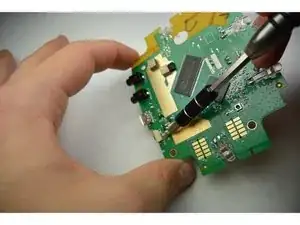С помощью паяльника удалите припой и кнопку сброса. Установите новую кнопку сброса и запаяйте ее.