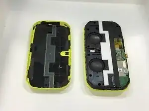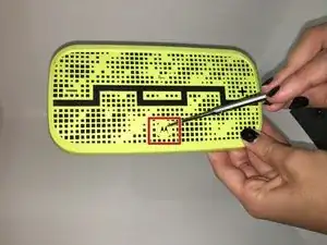 Отделите переднюю накладку от нижней части динамика, вставив край лопатки в середину паз.