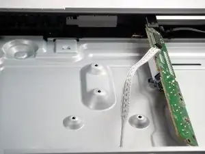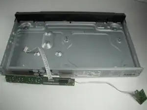 Удалите пять винтов с крестообразным шлицем #1 (чёрные, 3/16"), крепящих крышку к DVD-плееру.
