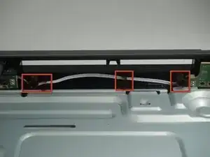 Покачивая, выньте белый провод, соединяющий две платы, из-под пластиковых держателей, фиксирующих провод.