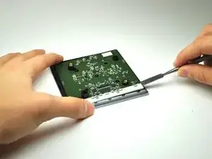 Используйте биту T-10 из набора инструментов iFixit, чтобы отвинтить четыре угловых винта длиной 1.4 дюйма на верхней части первого слоя.