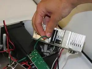 Сожмите зелёные защёлки на нижней стороне верхней части корпуса и выдавите их через пластик корпуса.