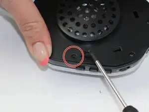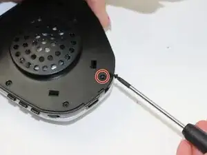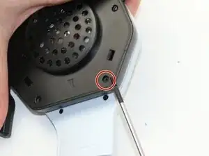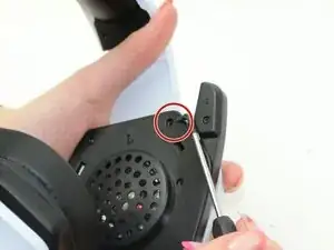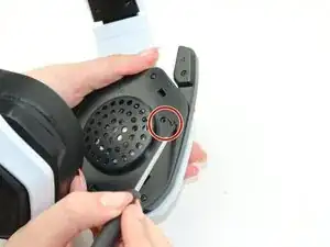 Используя отвертку Phillips #000, удалите первый винт длиной 9 мм, который крепит левую часть гарнитуры.