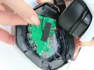 Используя либо руки, либо пинцет, аккуратно удалите зеленую панель изнутри гарнитуры.