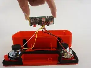 Аккуратно разъедините динамик, чтобы отделить его от батареи и материнской платы. Затем вытяните материнскую плату за края и поднимите вверх.