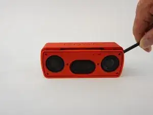 Вставьте лопатку между углами корпуса и лицевой частью динамика, чтобы открыть устройство. Винт в верхнем правом углу может быть труден для извлечения. Если вы не можете выкрутить его отверткой, сильное вытаскивание лицевой части динамика может сломать пластик вокруг винта.
