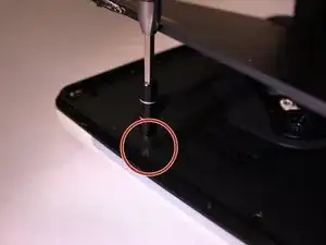 Поместите плеер горизонтально, чтобы наружная оболочка была направлена вверх. С помощью отвертки открутите все винты корпуса на нижней стороне плеера.