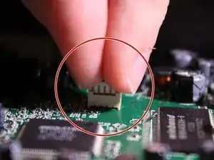 Чтобы отсоединить этот провод, возьмитесь за пластиковый разъем пальцами и аккуратно тяните вверх, отключая его от материнской платы.
