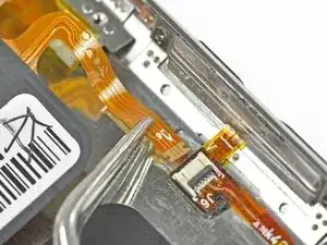 Следующие шаги требуют снятия компонентов, находящихся под местом расположения дисплея. Держите дисплей, чтобы не создавать натяжения на тонкий шлейф дисплея.