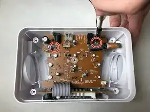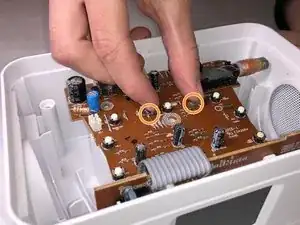 Снимите верхнюю часть устройства и внимательно осмотрите плату. Вы увидите два динамика, по одному с каждой стороны устройства.