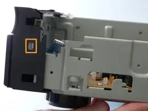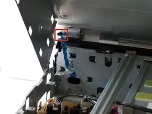 Возможный риск повреждения устройства: Осторожно поднимите верхнюю панель, так как там находятся два синего цвета шлейфа, которые необходимо отключить перед снятием панели, и мы НЕ хотим, чтобы они сломались.