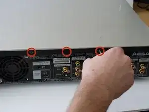 Сначала удалите три черных винта 12 мм, которые крепят верхнюю панель (Philips #2).
