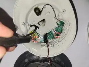Открутите два винта размером 3 мм, удерживающих плату в наушниках.