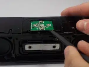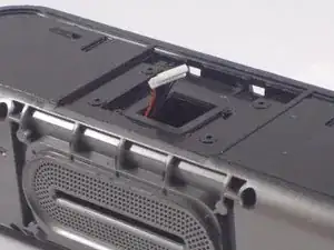 Чтобы снять переднюю решетку динамика, возьмите металлическую лопатку и подойдите к заднему углу устройства, где передняя панель изгибается. Вставьте лопатку и приподнимите угол до тех пор, пока зажимы не освободятся от панели. Повторите для другой стороны решетки. Когда все зажимы освободятся, снимите решетку с передней части устройства.