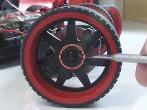Используйте отвертку Phillips #2 для удаления винта Phillips #2 размером 4 мм внутри колеса.