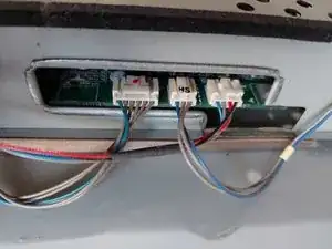 Сначала необходимо открутить 4 винта, держащие подставку. После этого открутите винты, удерживающие заднюю панель, они расположены в углах устройства.
